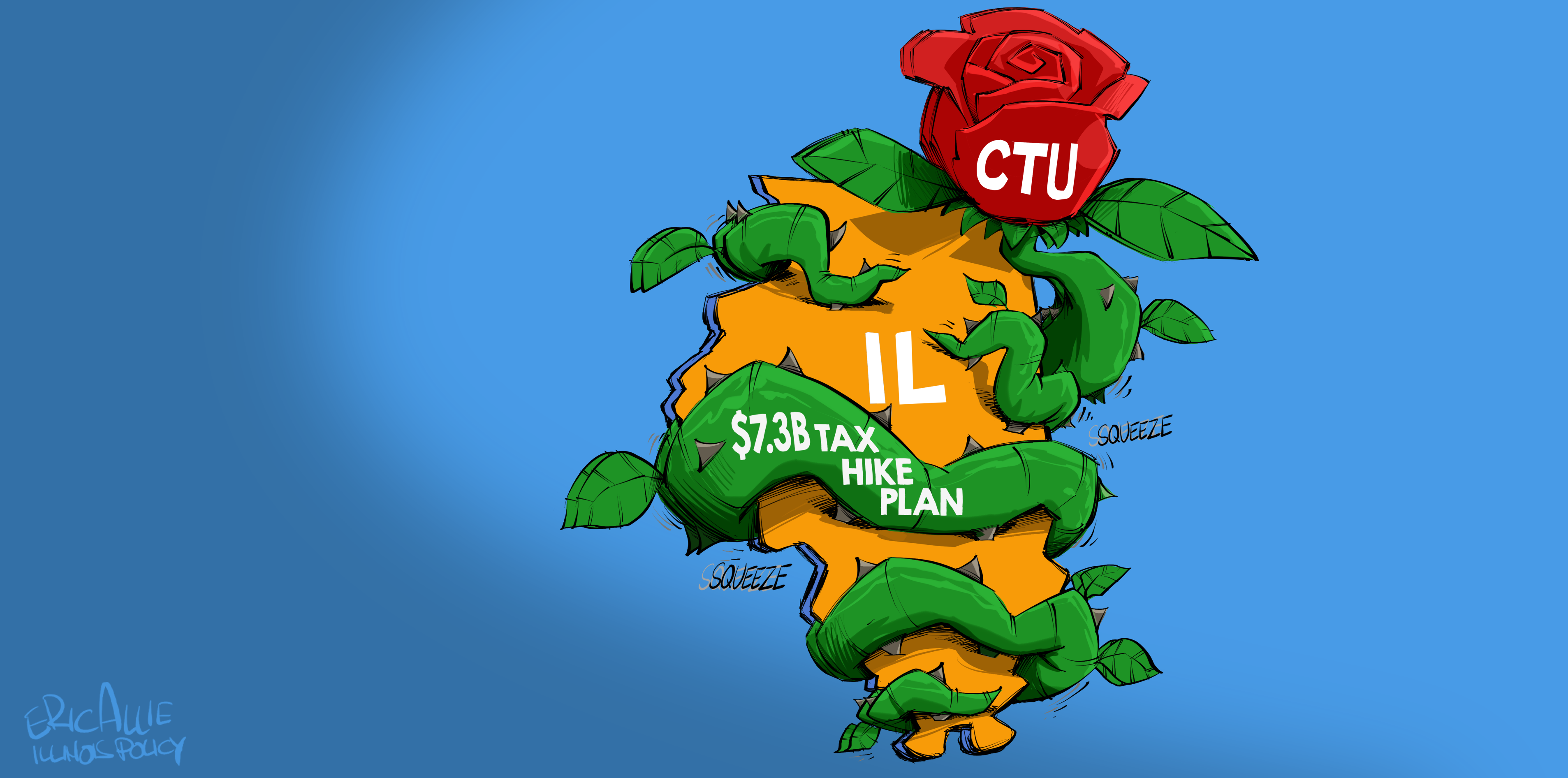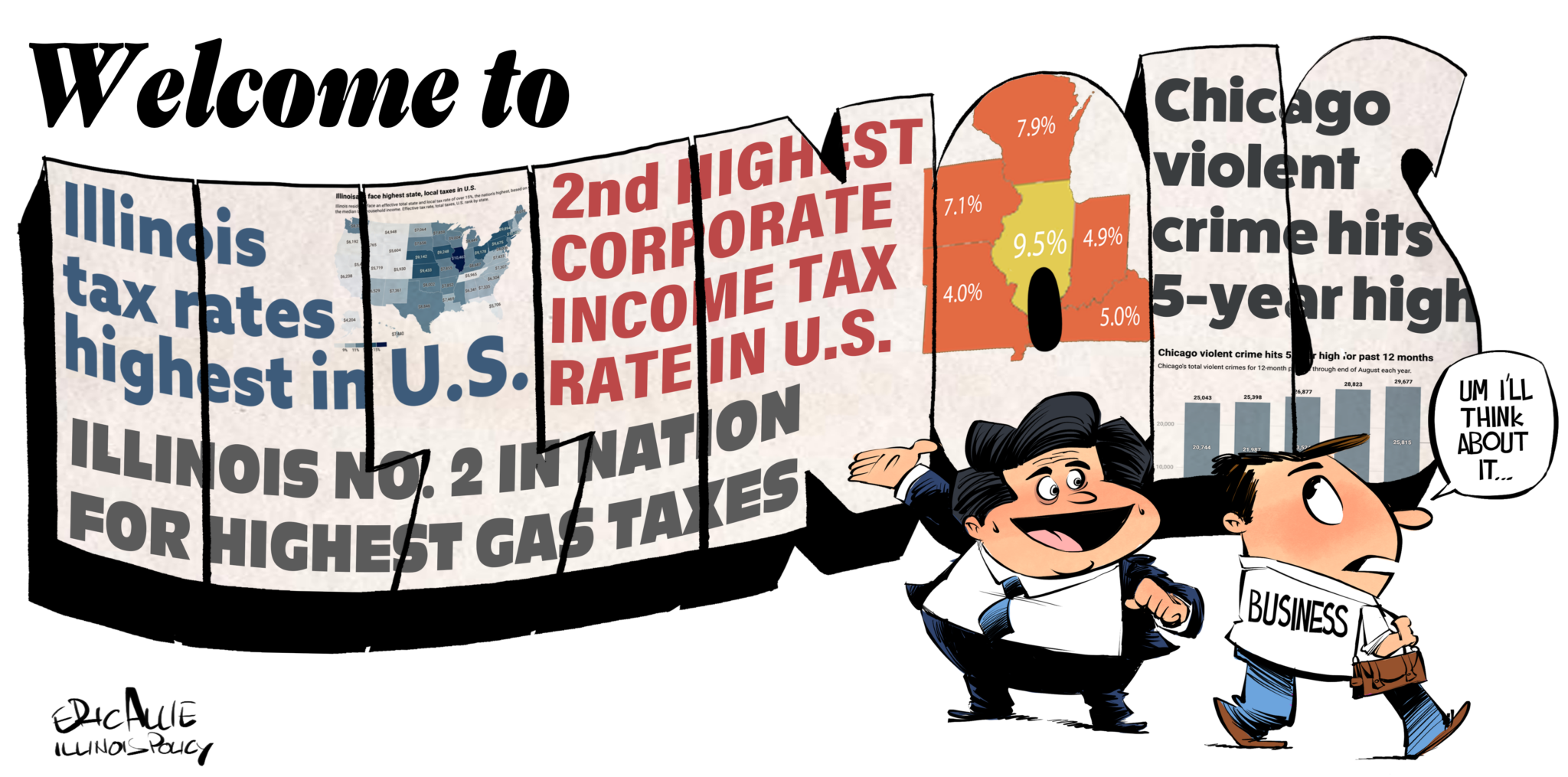 Cartoons by Eric Allie for the Illinois Policy Institute